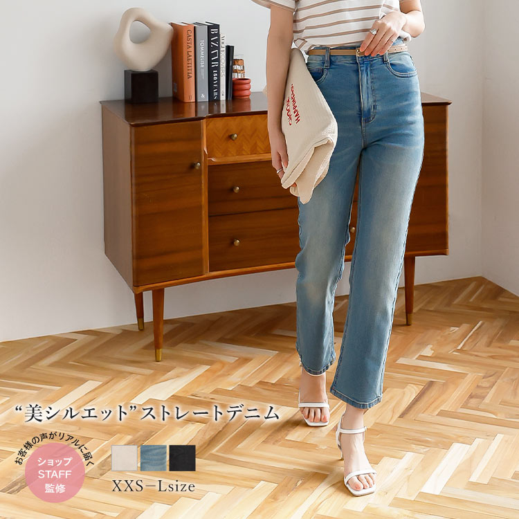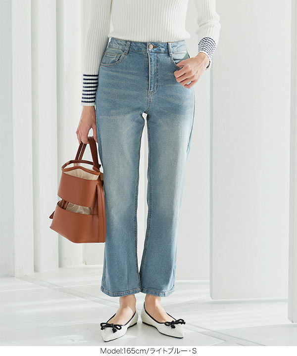 美シルエットデニムパンツ レディース 40代 50代 30代 ボトムス ストレートデニム ハイライズ M3341