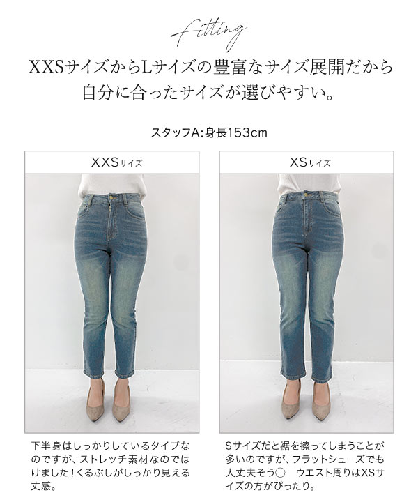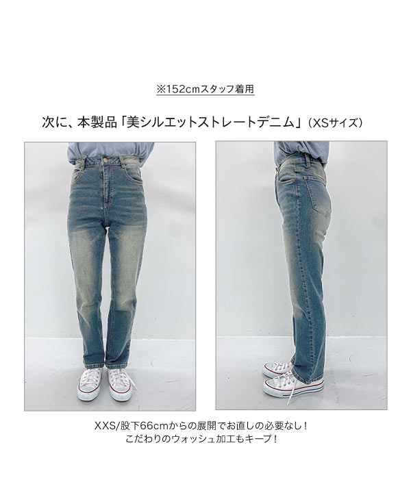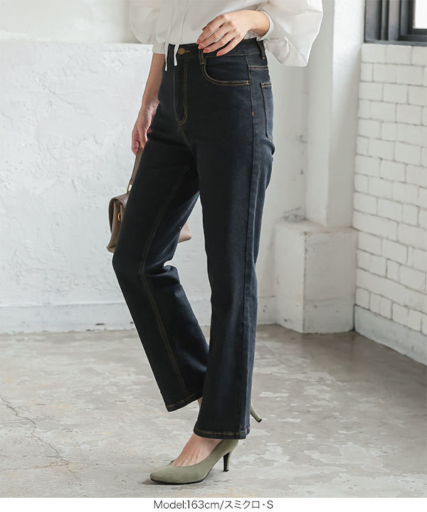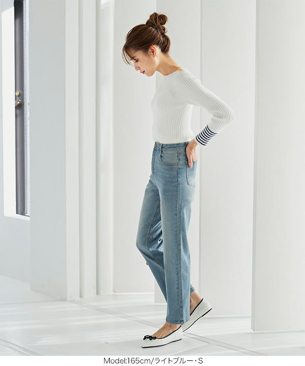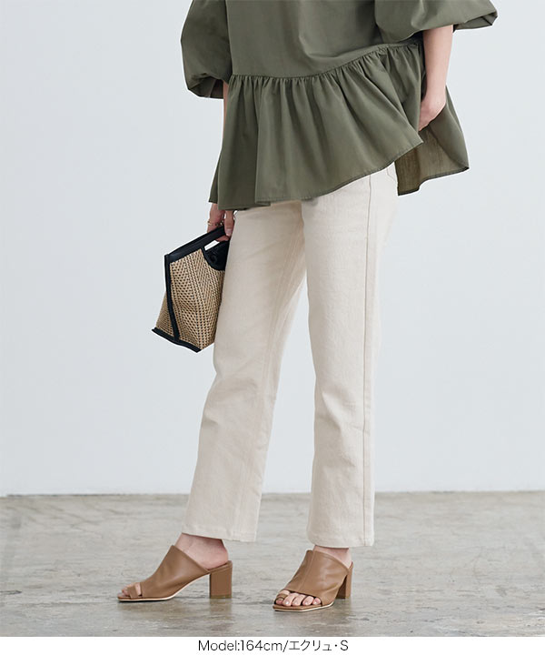 股上深め&裾にかけてのストレートシルエットがすっきりとした印象に。