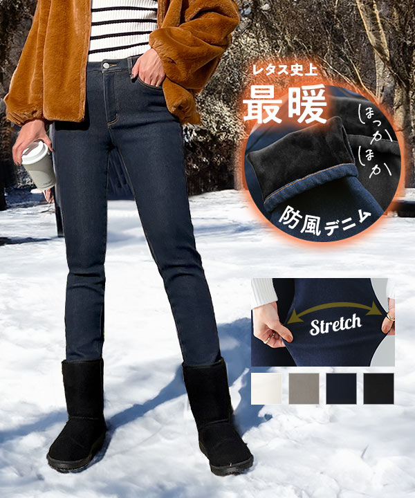 [ 裏起毛 ] 防風裏ファーデニムパンツ