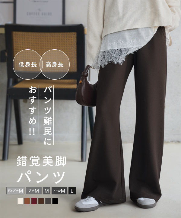 [ 選べる5サイズ ] 錯覚美脚ストレッチワイドパンツ