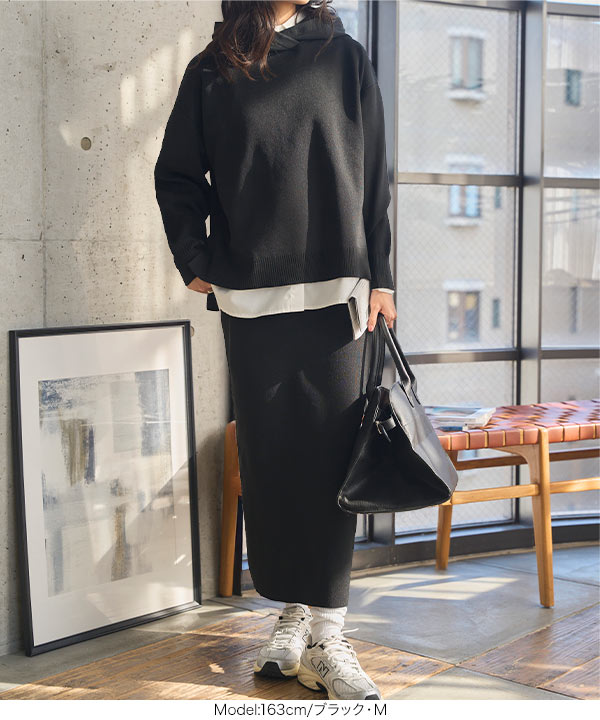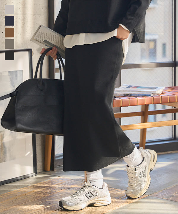 商品カテゴリ:20代 30代 40代 Iライン Lサイズ イージーケア カジュアル グレー シンプル スポンディッシュ セットアップ タイトシルエット タイトスカート チャコール ナロースカート ニット ニットスカート ニットボトム ネイビー ブラウン ブラック ペンシルスカート レディース 黒 秋 春 着回し 低身長 冬