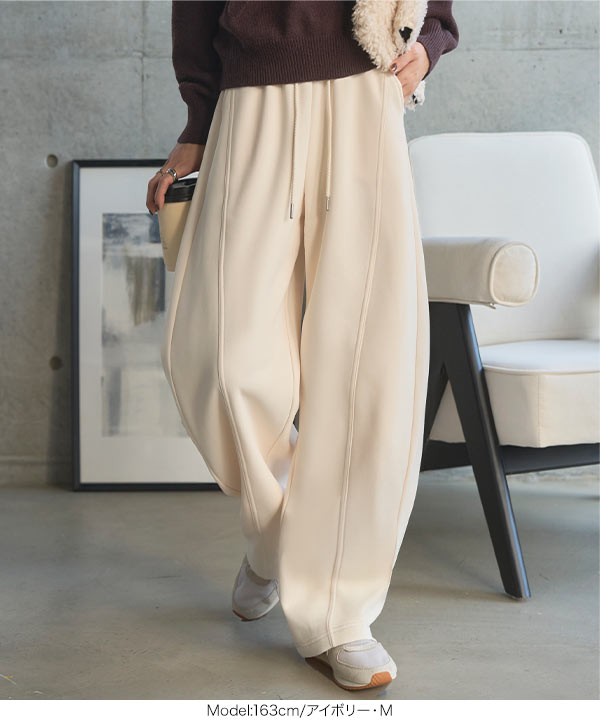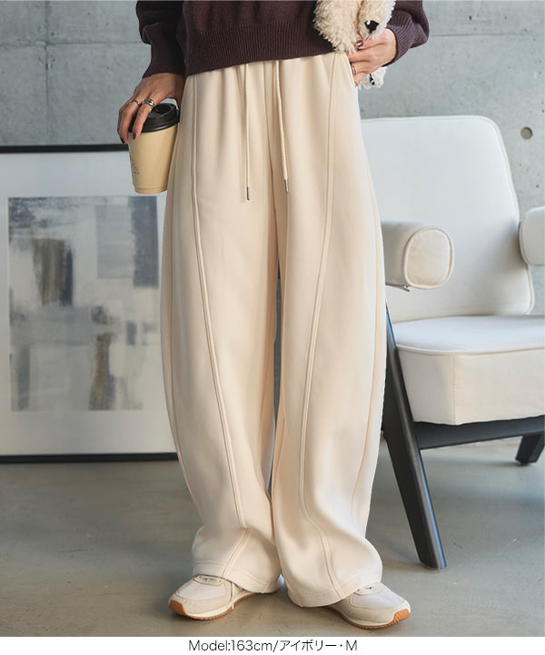 商品カテゴリ:20代 30代 40代 カーブパンツ スウェット スエット セットアップ バレルレッグ レディース 暖かボトム 低身長 冬パンツ 裏ボア 裏起毛 裏毛