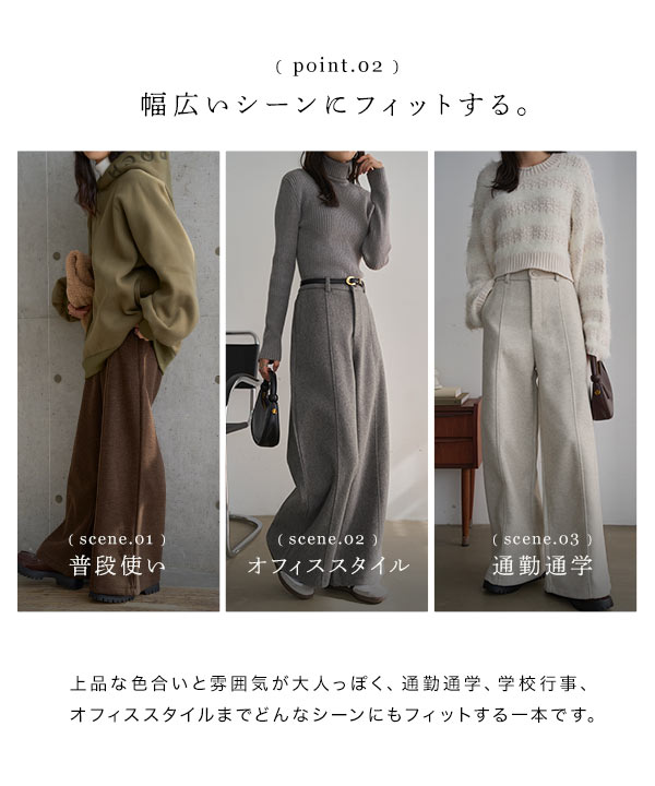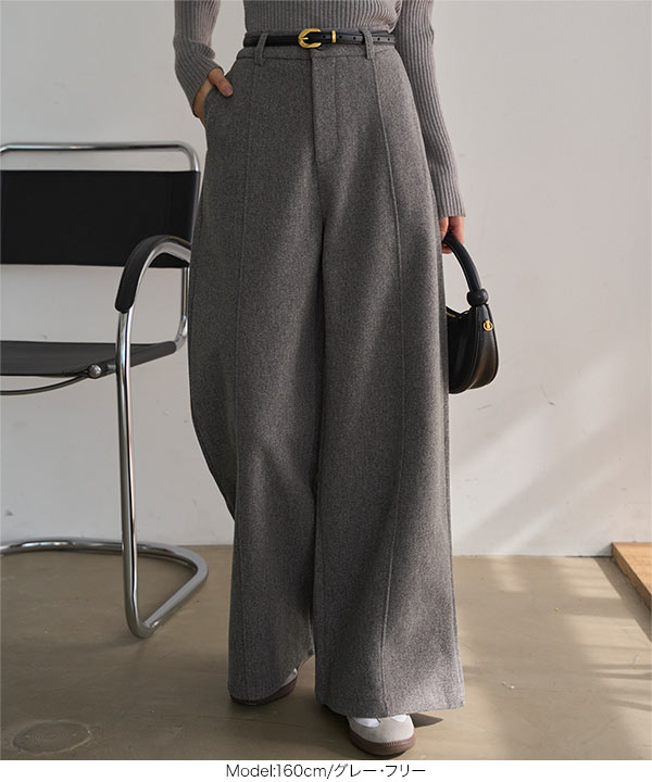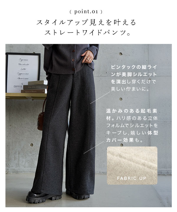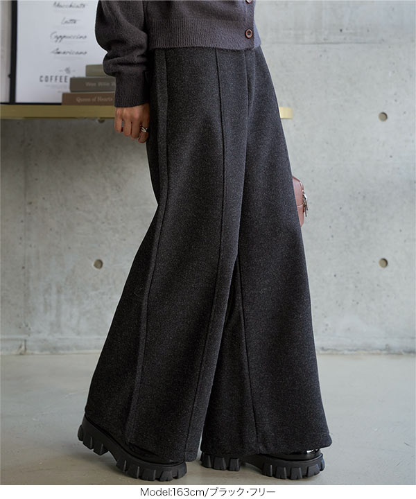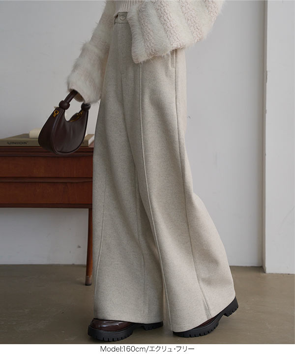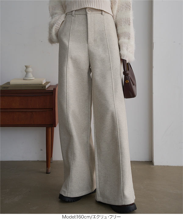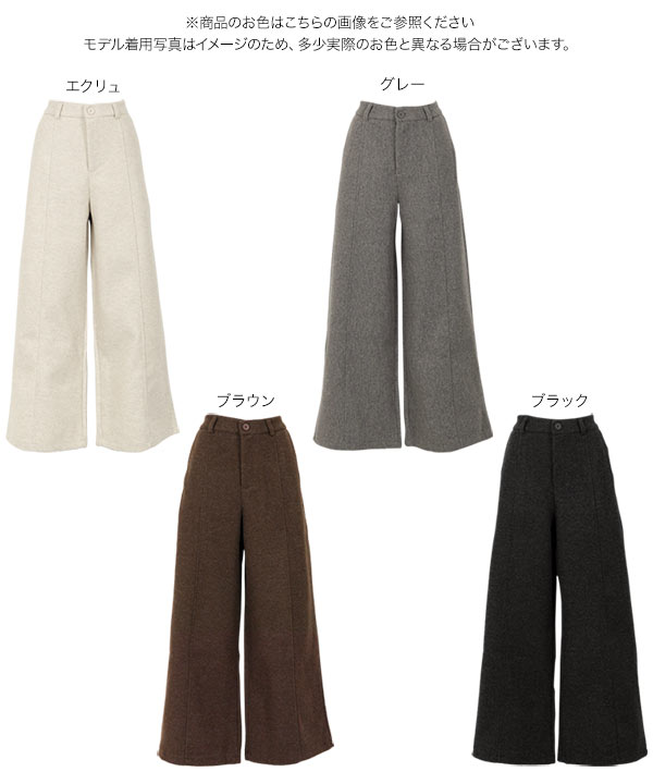 商品カテゴリ:20代 30代 40代 エクリュ グレー ストレート ストレートパンツ センターシーム パンツ フェイクウール ブラウン ブラック ボトム レディース ロング丈 ワイド ワイドパンツ 脚長 黒 暖か 茶 冬パンツ 冬ボトム 防寒