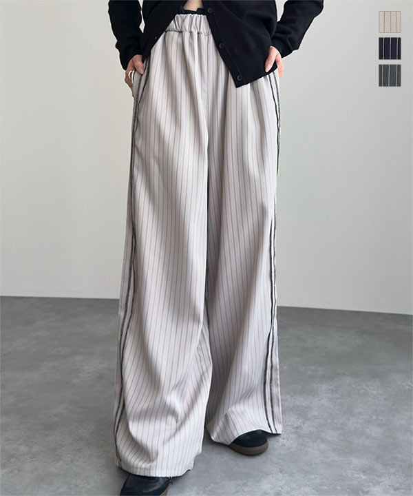 ダブルウエストストライプワイドパンツ
