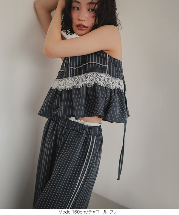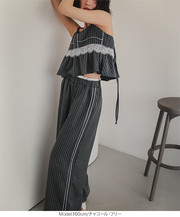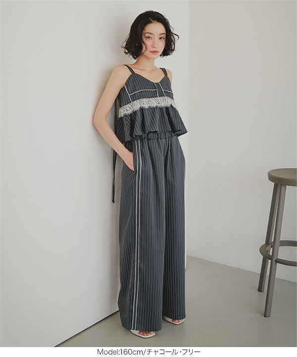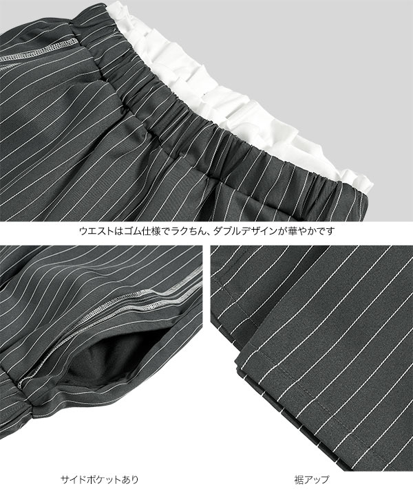 商品カテゴリ:グレージュ ゴム サイドライン ストライプ ズボン スラックス セットアップ ダブルウエスト チャコール ネイビー パンツ フリー フリル フルレングス ゆったり らくちん レース レディース ワイド ワイドパンツ 楽ちん