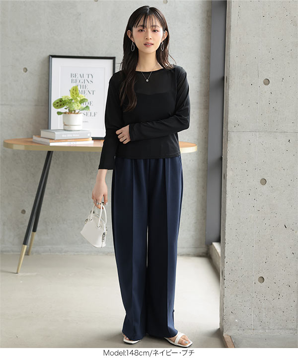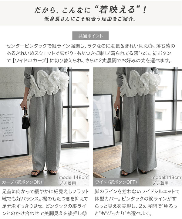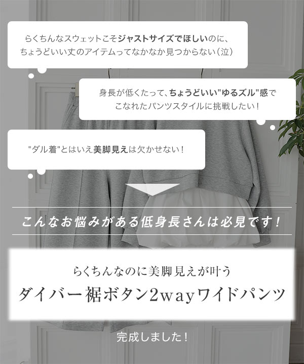 [ Petitle / プチレ ] 選べる2丈 ダイバー裾ボタン2wayワイドパンツ
