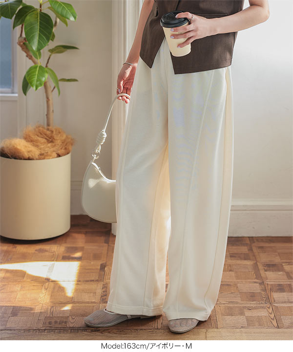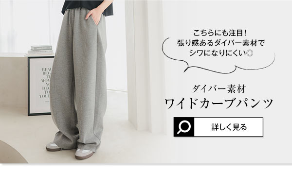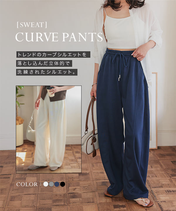 ずるっとしたボリューム感がかわいいカーブパンツは、