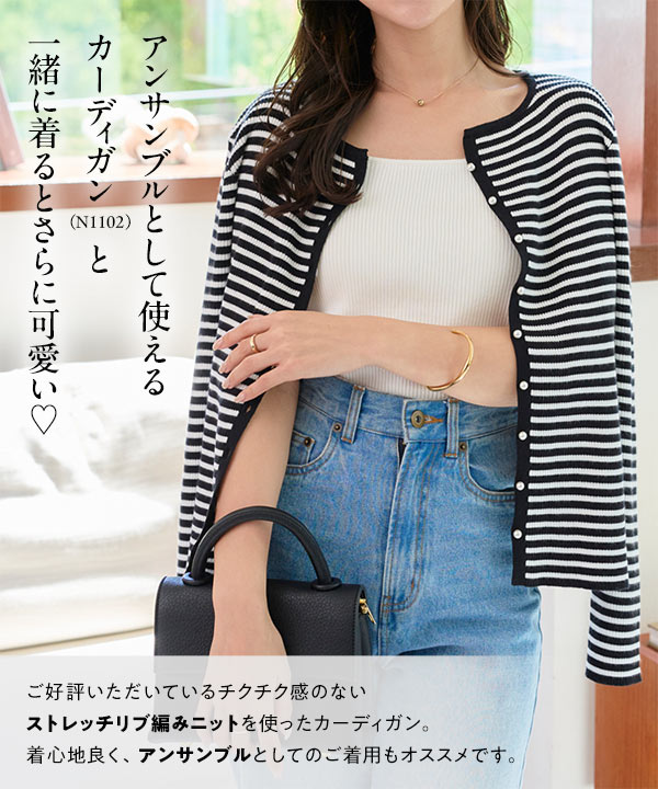 商品カテゴリ:20代 30代 40代 アンサンブル インナー オフィス カップつき カップ付き キャミソール ゴム サマーニット セットアップ ダブルストラップ トップス ニット ブラ ボーダー リブ リブニット レイヤード レディース 下着 肩紐 上品