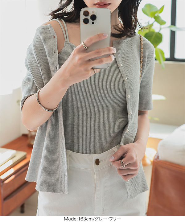 シアーシャツやカーディガンとのレイヤードにも映える、