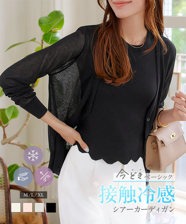 [ M/L/XL 接触冷感 ] ベーシックシアーニットカーディガン