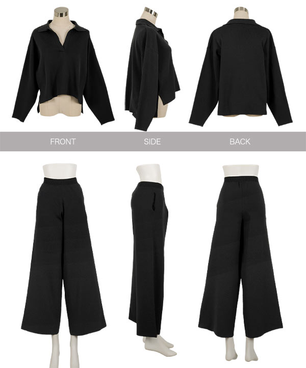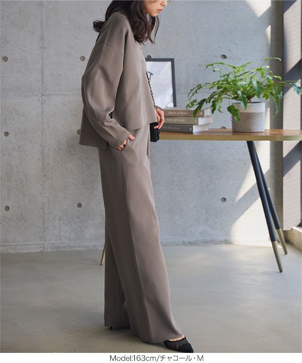 トップスとワイドパンツの嬉しいセットアイテム。