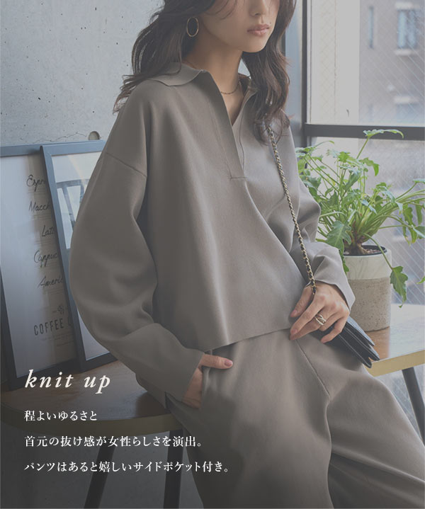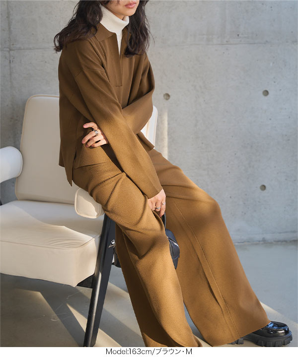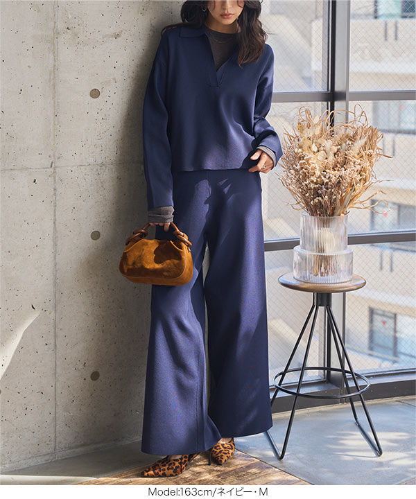 商品カテゴリ:スキッパー スポンディッシュ セーター セットアップ ニット ニットアップ ニットパンツ ワイドパンツ 低身長