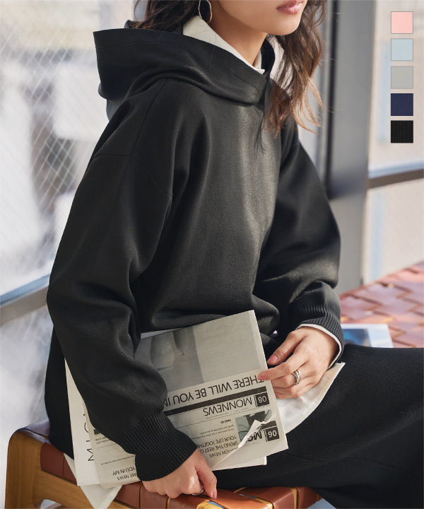 商品カテゴリ:20代 30代 お家時間 グレー サイドスリット サックス スウェットライク セットアップ ニット ニットトップス ニットパーカー ネイビー パーカー ピンク フーディ ブラック ブルー ママ ゆったり レイヤード レディース ワンマイル 楽ちん 空港コーデ 黒 紺色 水色 大人 二ットアップ