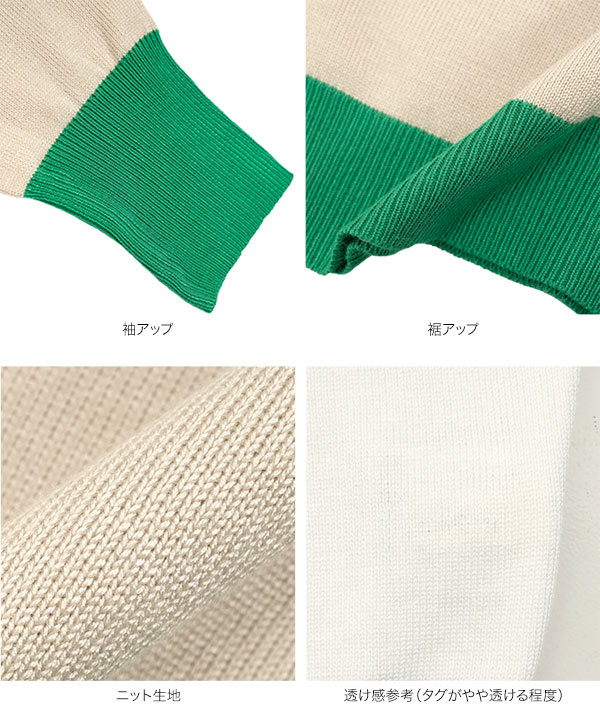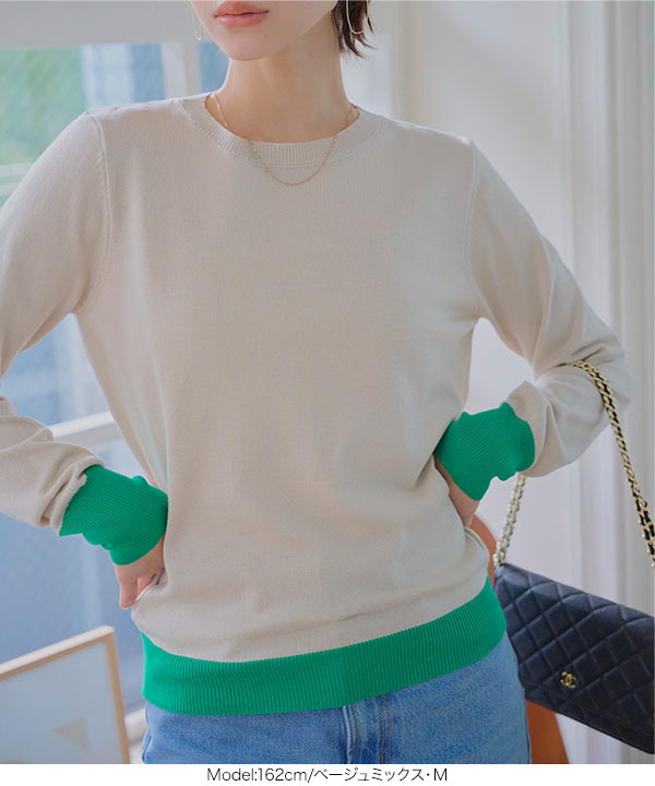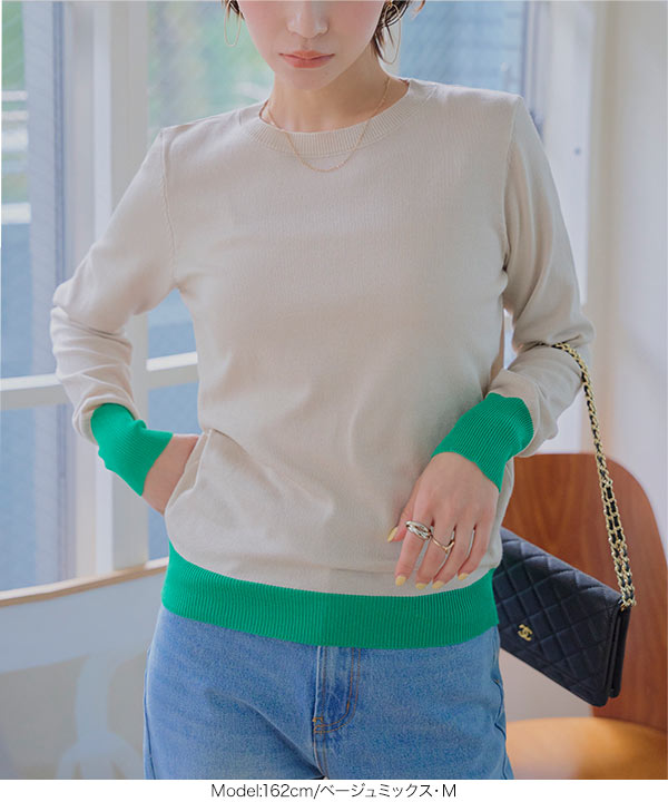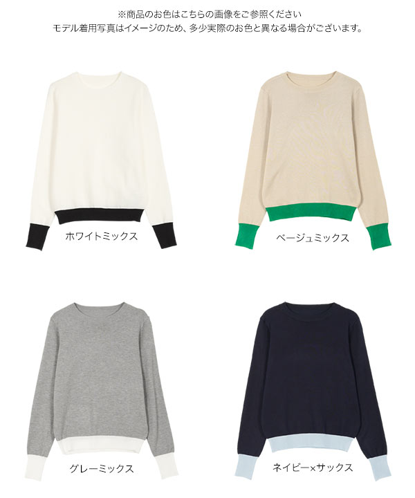 M L 丸首バイカラーニットトップス