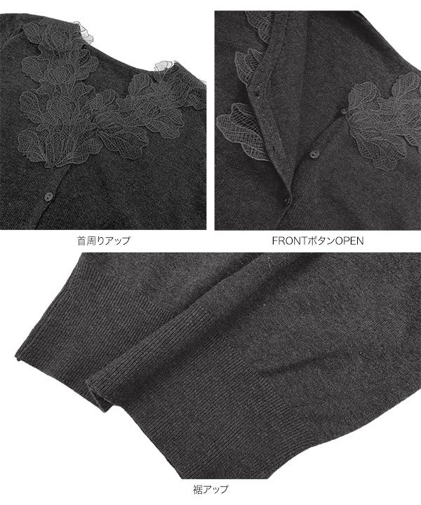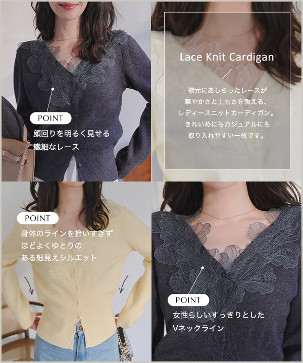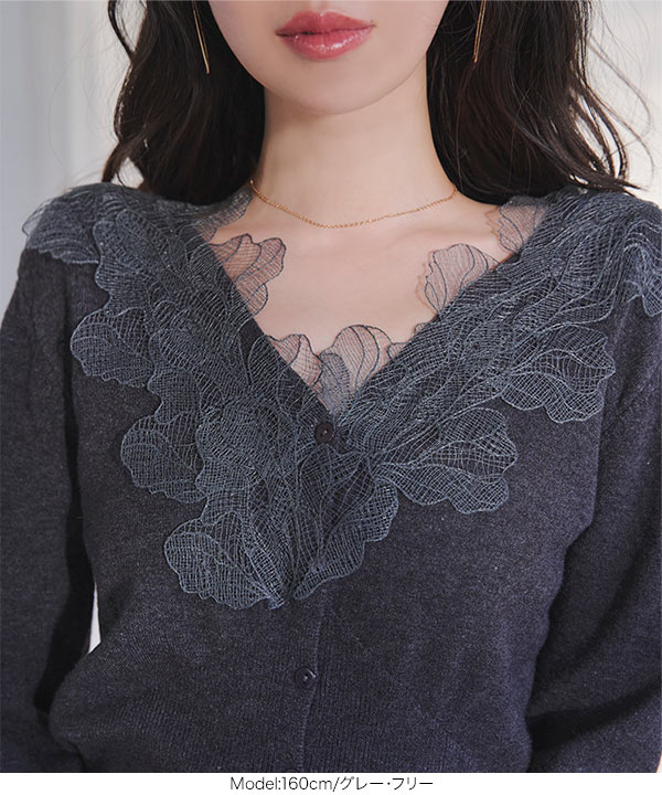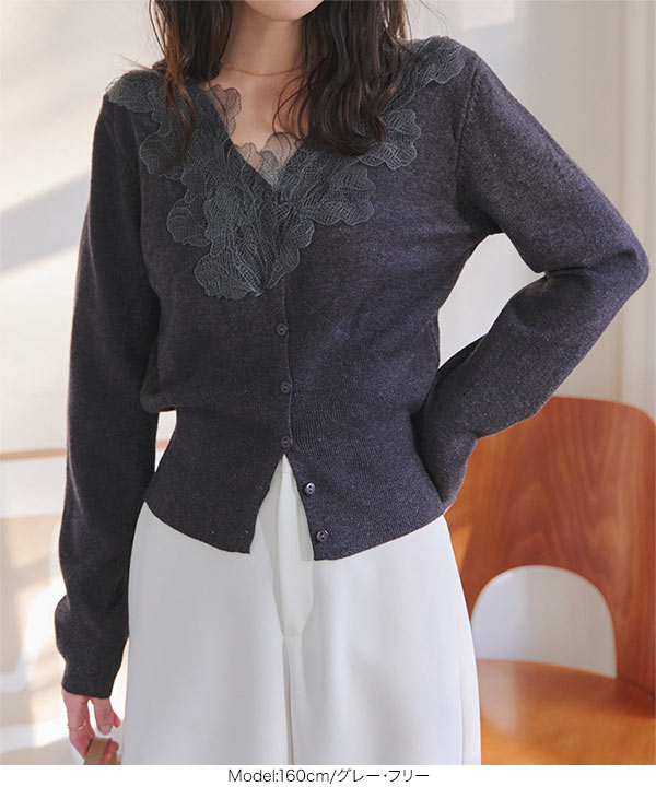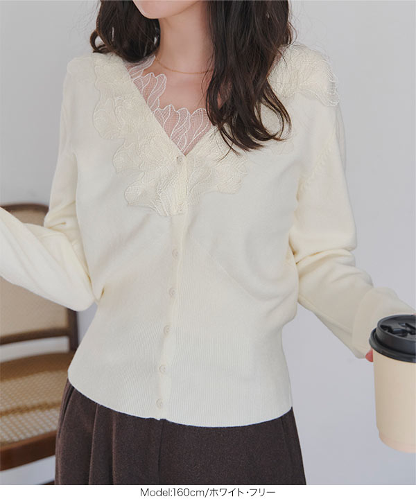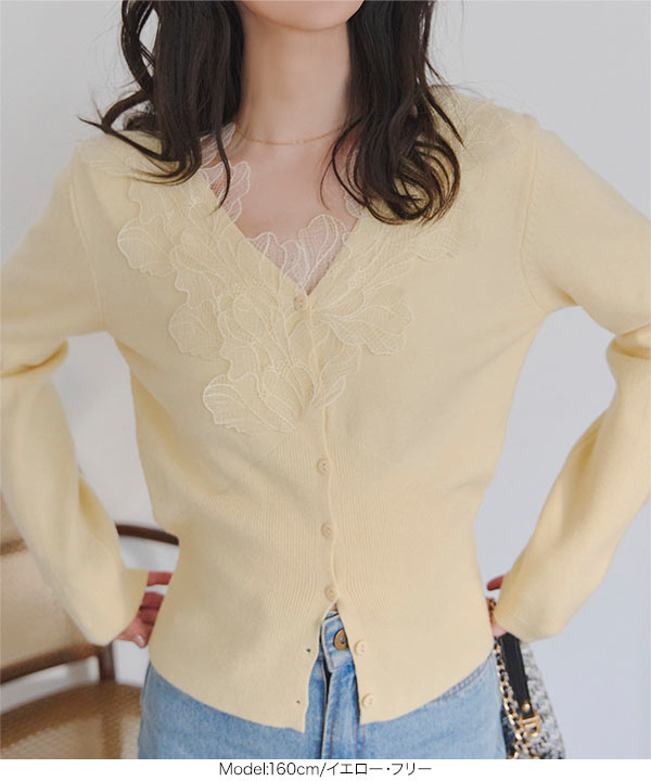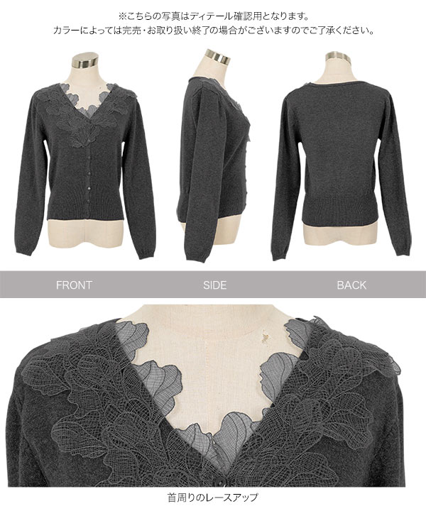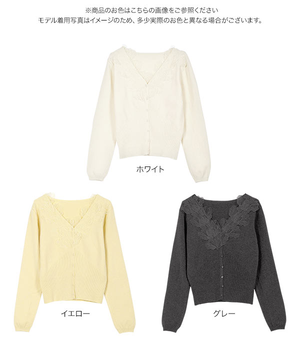 襟レースニットカーディガン