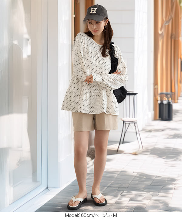 長めの丈感とゆったりシルエットで体型カバーも◎!