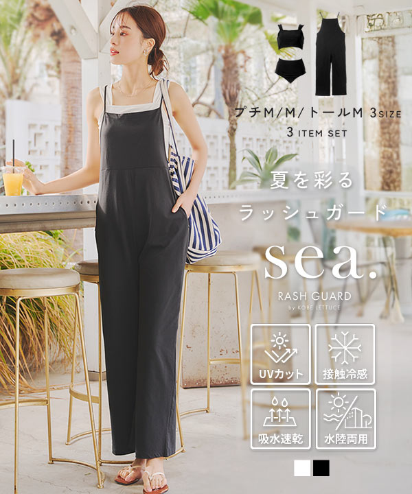 セール ラッシュガード レディース 上下 水着付き サロペット 体型カバー 接触冷感 3点 セパレート 40代 50代 おしゃれ S212