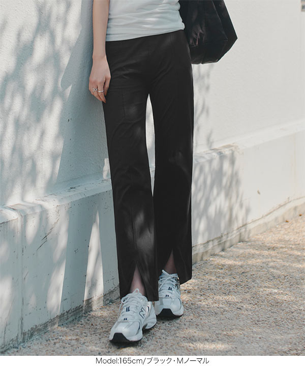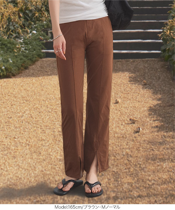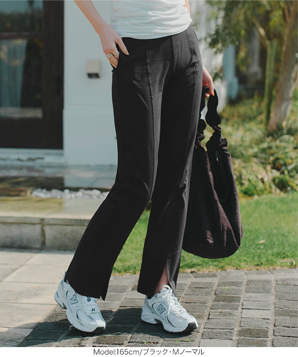 裾のスリットデザインが足元に抜け感をプラスし、