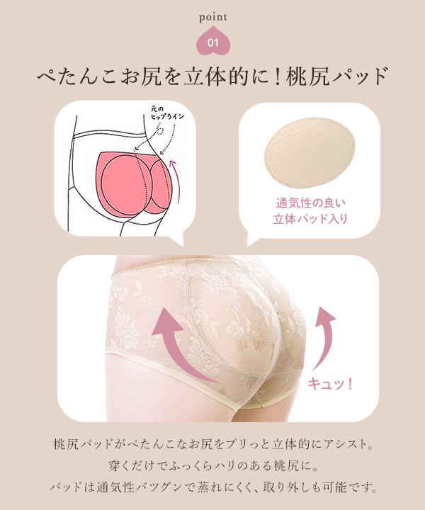 アーチ形のパットが入り美尻なスタイルのファッションが楽しめます。