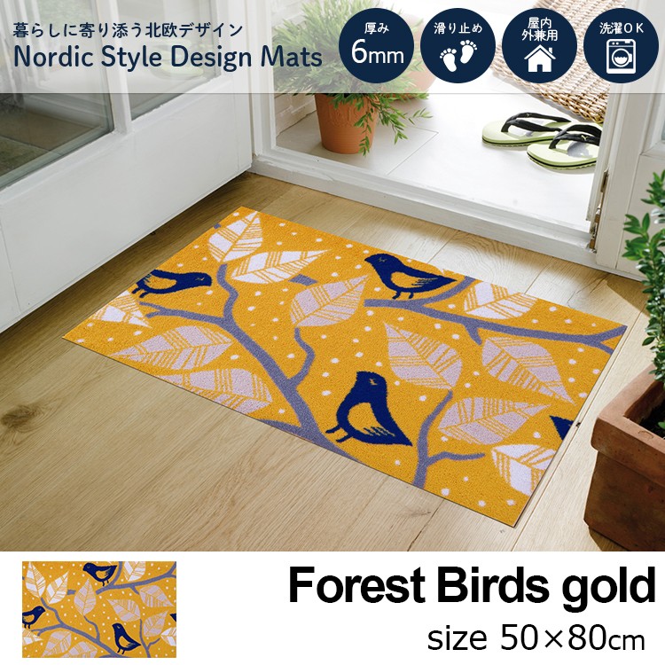 玄関マット 北欧 Forest Birds gold 50×80cm 室内屋外兼用 日本製