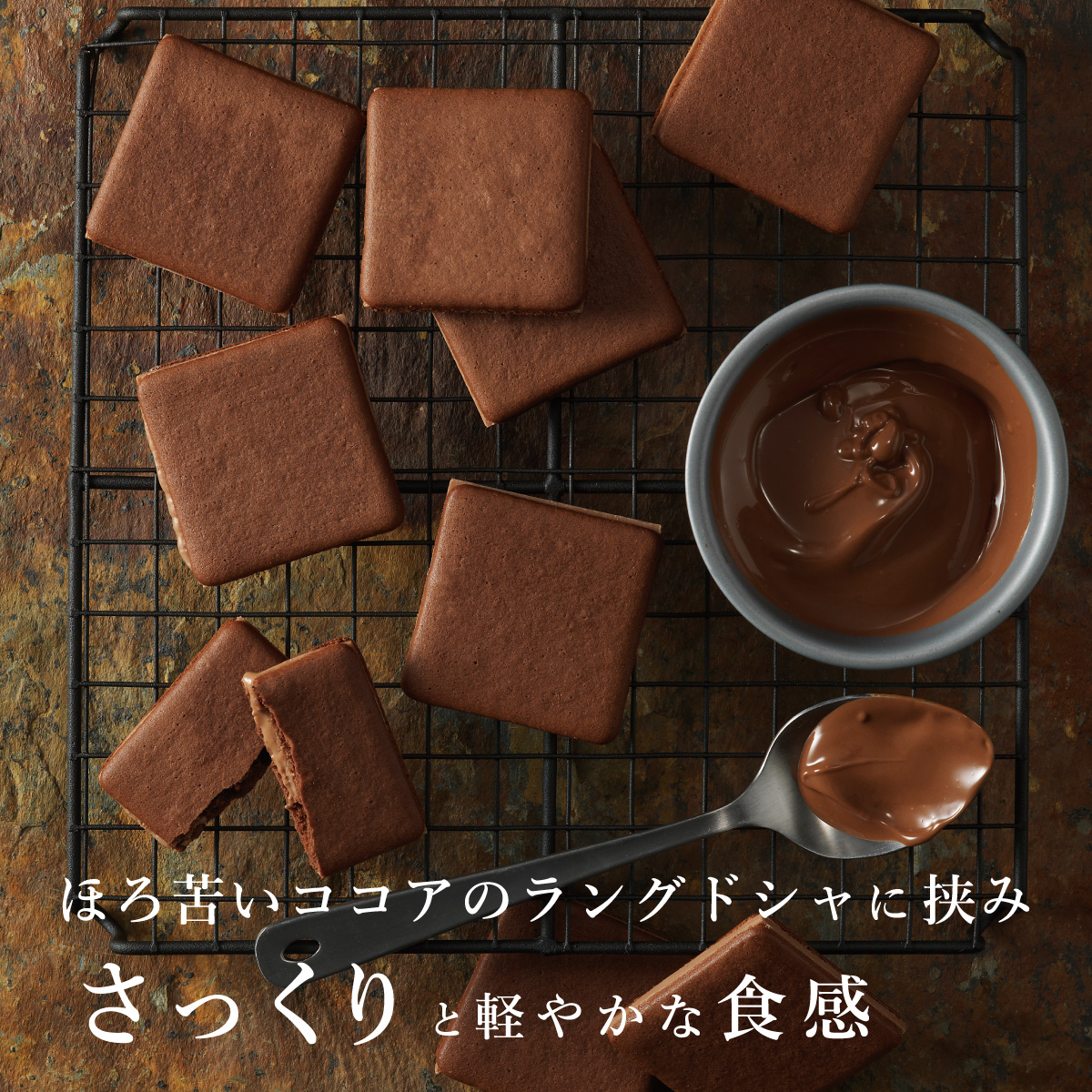 ほろ苦いココアラングドシャは軽やかな食感。