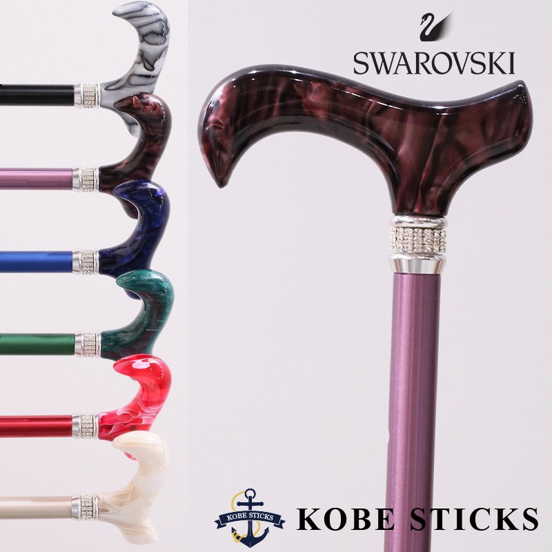 【レビュー100件超☆4.83】スワロフスキーきらめく マーブル柄ステッキ(長さ調節・折りたたみ)杖 女性 つえ おしゃれ ステッキ かわいい プレゼント ギフト