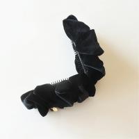 ベロア リボン バナナクリップ ☆フリル ドレープ 黒 大ぶり りぼん ヘアクリップ 結婚式 花嫁 髪飾り 髪留め 大人 かわいい おしゃれ 30代 40代 ファッション