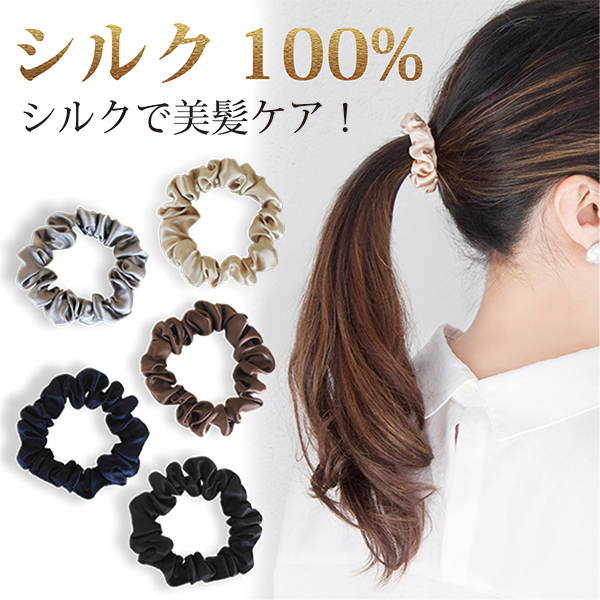 シルク シュシュ ヘアゴム ☆送料無料 細め スリム シルク100% 絹 シルクシュシュ シルクゴム シルクヘアシュシュ シルク シルク ヘアゴム ヘアケア