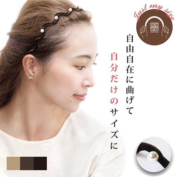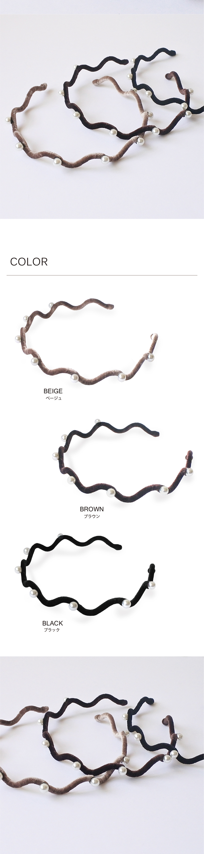 カチューシャ ☆ ベロア パール ウェーブ スリム 飾り付 カチューシャ ベロア ベルベット 痛くない 細身 細め 細い 華奢 上品 ズレない ずれない