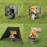 コンロのまわりを囲うことで調理中の火を風から守るアイテム。両端の穴に紐を通してたき火台などの近くに吊り下げれば、熱を効率よく伝える反射板としても使うことができる。軽量なアルミ製なので持ち運びがしやすく、折りたたんでコンパクトに収納可能。