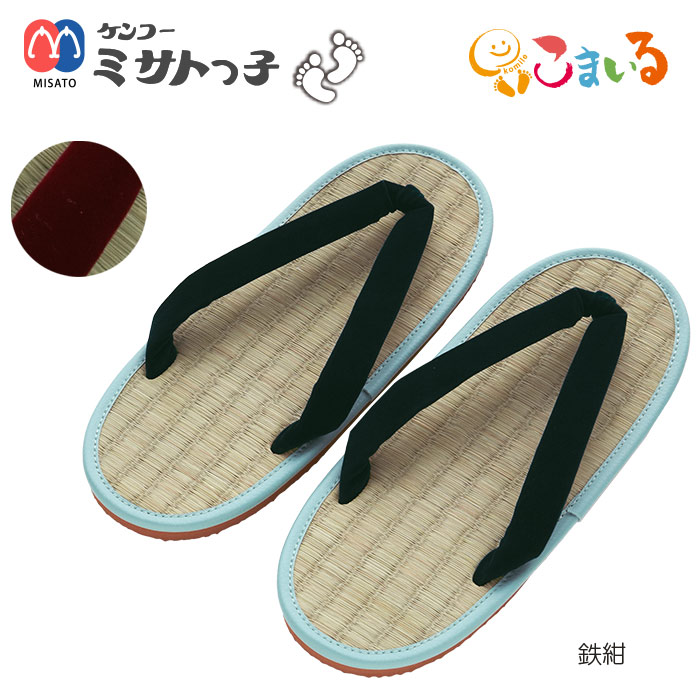 天然のい草を使用。底面はすべりにくい凹凸ゴム使用。体重をバランスよく保つため、鼻緒は真ん中にすげてあります。