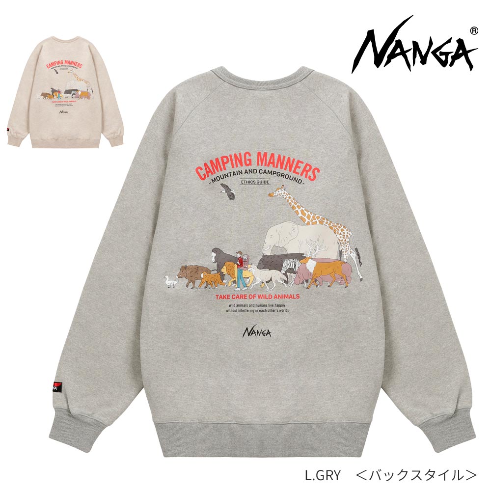 NANGA ナンガエコハイブリッドキャンピングマナーワイルドアニマルスウェットシャツ NW2411-1F700