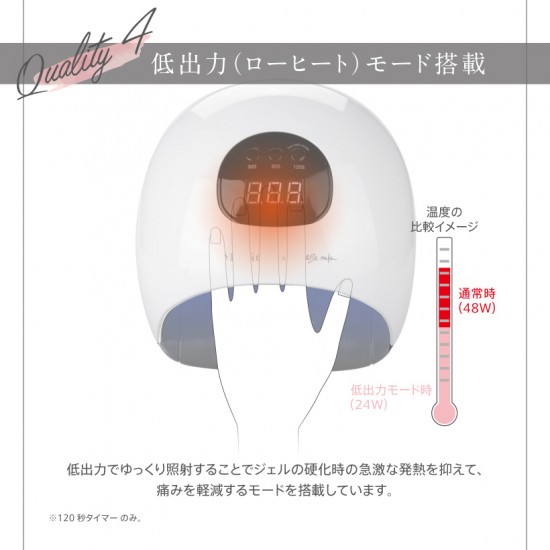 ●硬化時の痛みを抑える「低ヒートモード搭載」