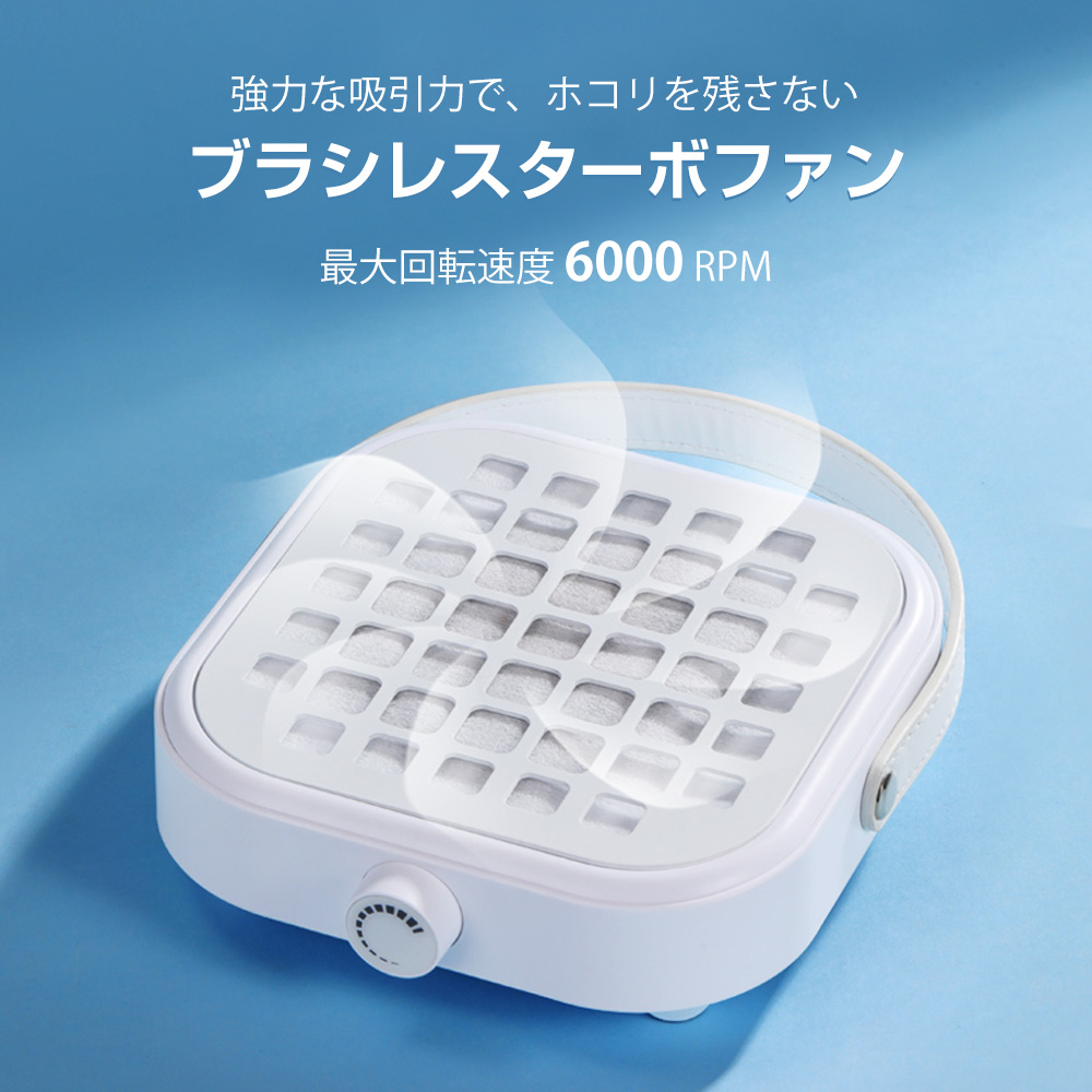 6000RPM の強力なブラシレスターボファンを搭載し、爪削りの際に出るダストをしっかり吸引。