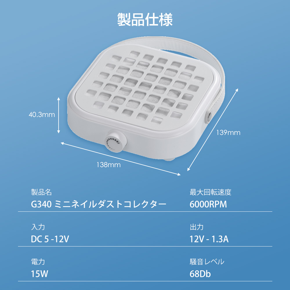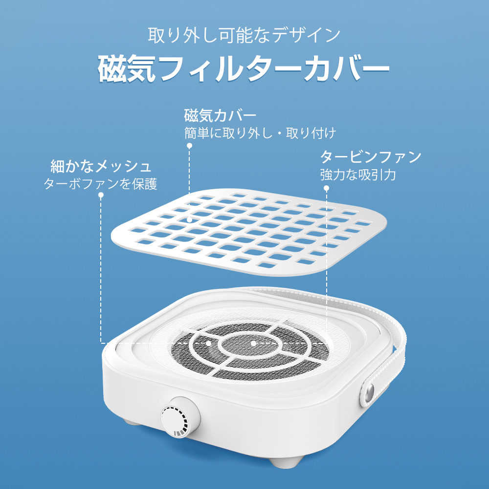G340ミニネイルダストコレクター 手のひらサイズ 無段階速度調節 ブラシレスターボファン 磁気フィルターカバー 静音 ネイルサロン 家庭用 ネイルドリル用集塵器