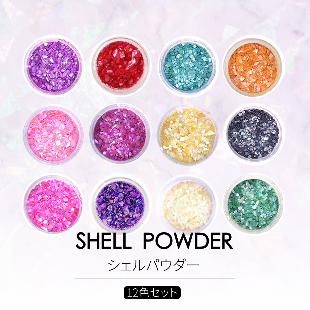 シェルパウダー 12色セット ジェルネイル ネイルパーツ ネイルアート ネイルアート ネイル用品 天然シェル