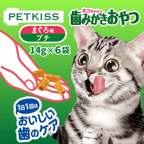 猫 歯磨き 猫 デンタルケア おやつ おまとめ 6個セット オーラルケア 歯垢 PETKISS ネコちゃんの歯みがきおやつ まぐろ味 プチ 14g×6袋