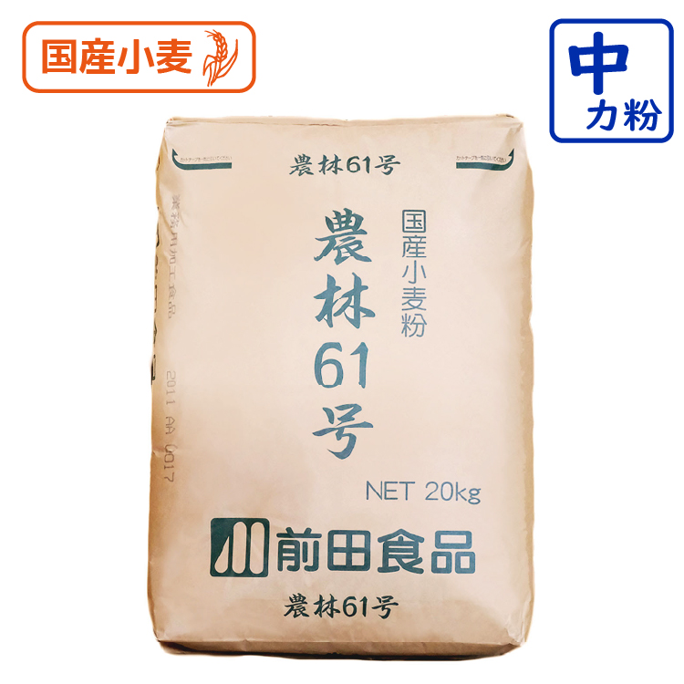 農林61号 20kg 小麦粉 国産 うどん 手打ちうどん粉 すいとん お菓子 クッキー 和菓子 洋菓子 業務用 前田食品