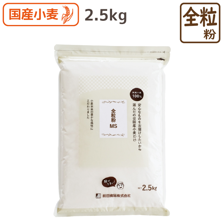 国産小麦全粒粉 細挽き(MS)2.5kg小麦粉 国産 パン用 強力粉 パン 製パン材料 製菓材料 胚芽 胚乳 食物繊維 ミネラル MS 前田食品