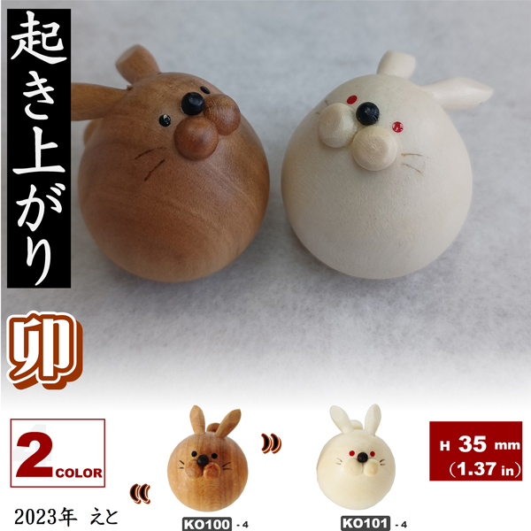 こけし 木製起き上がり 干支 卯 茶、白(※お色をお選び下さい。)2023年干支 インテリア 置物 コロコロ 12支集める ホッとする やさしい空間