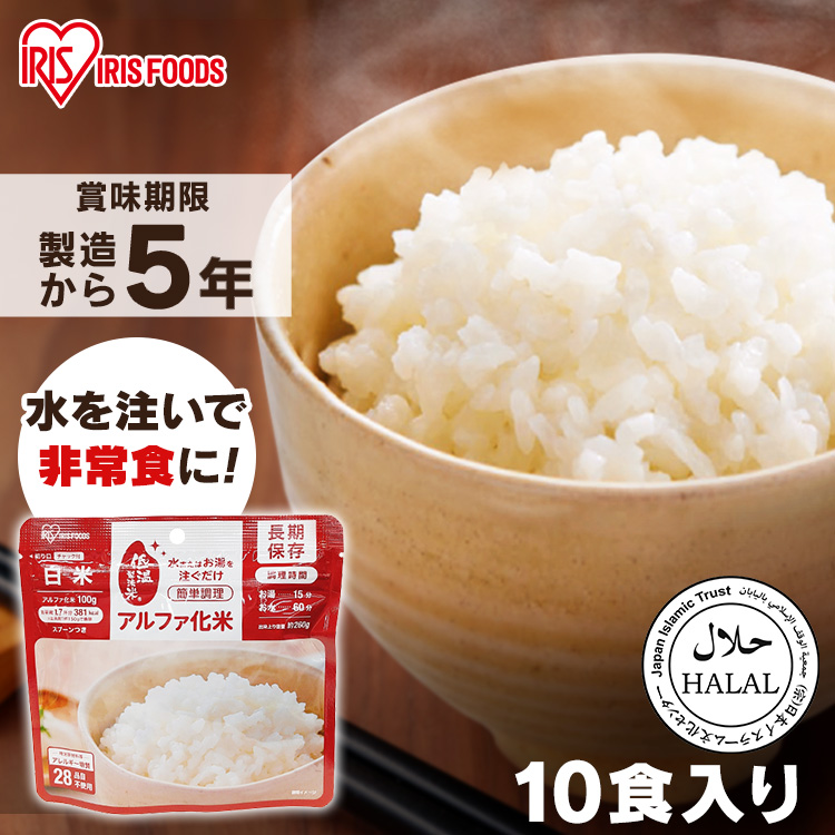 非常食 防災食 アルファ米 10食 備蓄 ご飯 ごはん 保存食 アルファ化米 白米 100g アイリスフーズ キャンプ アウトドア