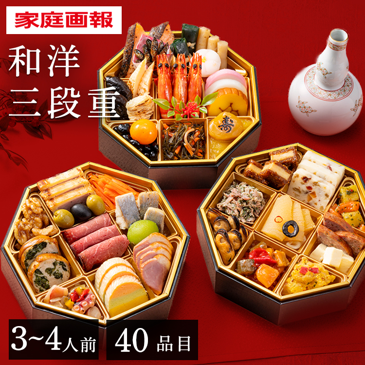 和洋おせち三段重/5.5寸相当紙箱/3〜4人前/40品目