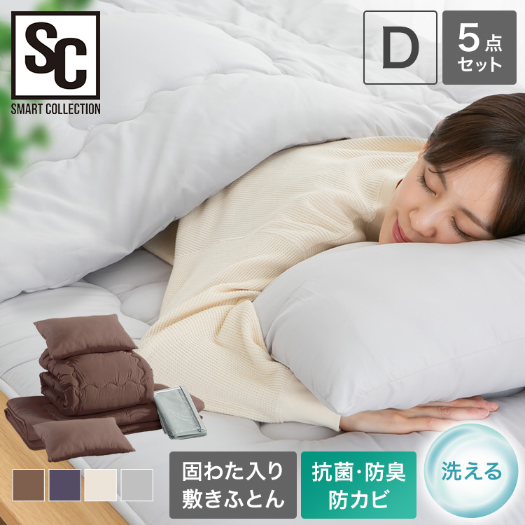 (検索用:布団セット ふとんセット ダブル 5点セット 抗菌防臭 防カビ 敷きふとん 掛けふとん 洗える 来客用 )