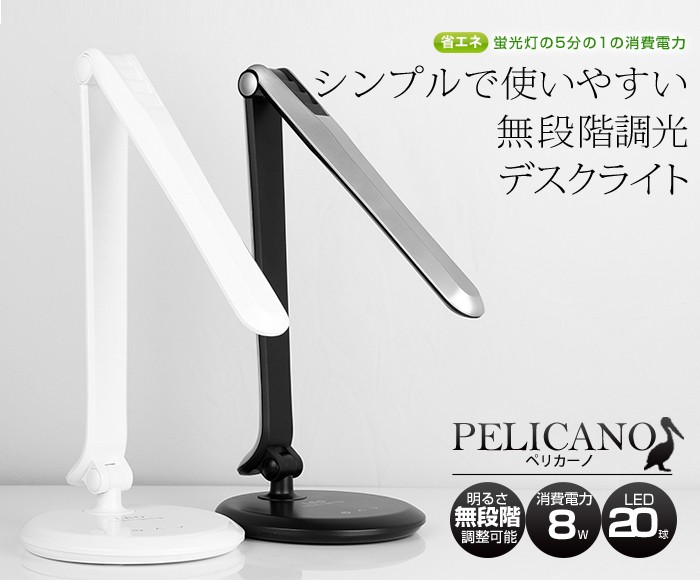 デスクライト LEDデスクライト おしゃれ 無段階調光機能付き シャープなのに愛らしい ペリカーノ 新生活応援 1人暮らし
