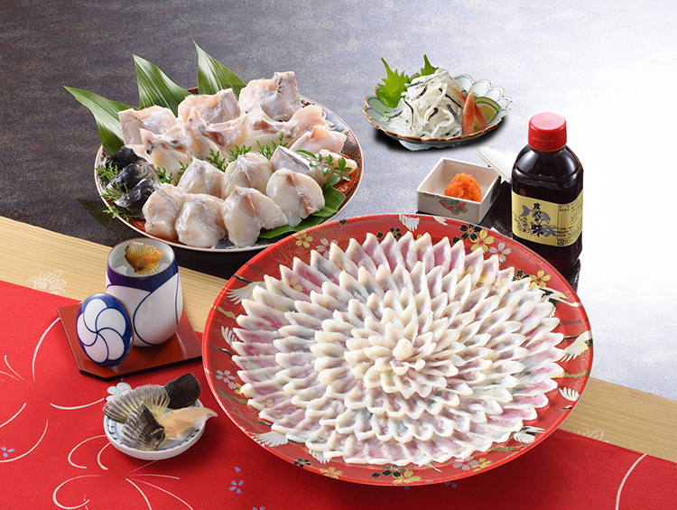 ふくといえばとらふく、本場・下関の職人たちが、丹念に腕によりをかけて大皿に盛り付けました。