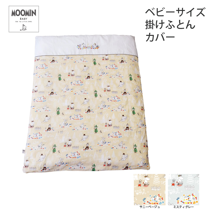 | ムーミンたちがやさしいカラーでプリントされたベビー掛け布団カバー。 綿100%のダブルガーゼカバーは、ふんわり柔らかくて赤ちゃんのお肌に馴染みやすい素材。襟元にはかわいいムーミンの刺繍入りです。 |