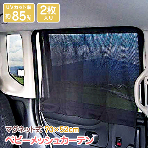 | サイズ | 車用カーテン 約70cm×52cm (2枚入り) UVカット率 約85% カラー:ブラック メッシュ生地 |