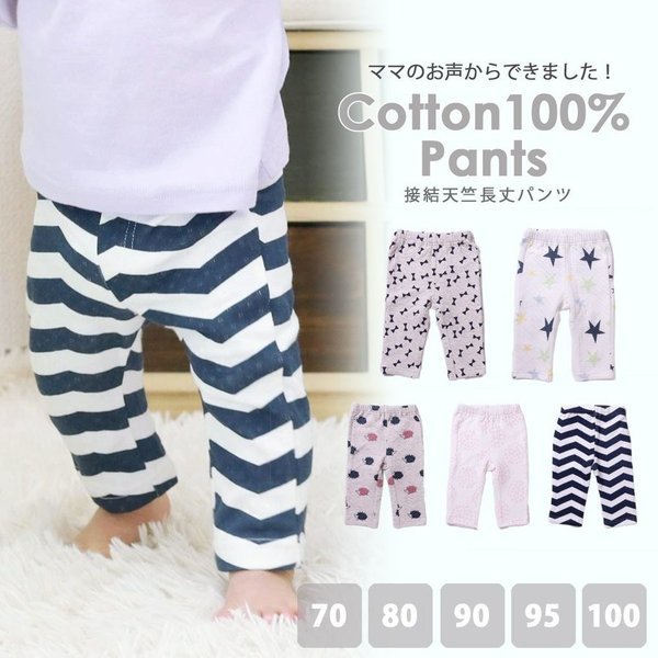 | 綿100%の接結天竺生地は薄い生地を2枚重ねして空気の層が出来るので心地いい暖かさの素材です。 総柄プリントが可愛いパンツは細すぎず、太すぎず、すっきりシルエットでリピ買い続出です!!! 同じシリーズのTシャツと合わせて部屋着にしたり、カバーオールもあって兄弟コーデも楽しめますよ! |