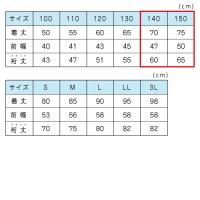 | 【140cm】【150cm】 ●サイズ 140 着 丈 70cm 前 幅 47cm 裄 丈 60cm ●サイズ 150 着 丈 75cm 前 幅 50cm 裄 丈 65cm |
