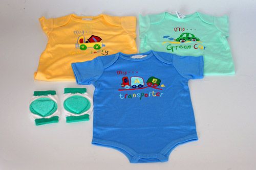 衣類 肌着 ひざあてイボーディスーツ ニーパッド のりもの柄 グリーンのハート 4点セット